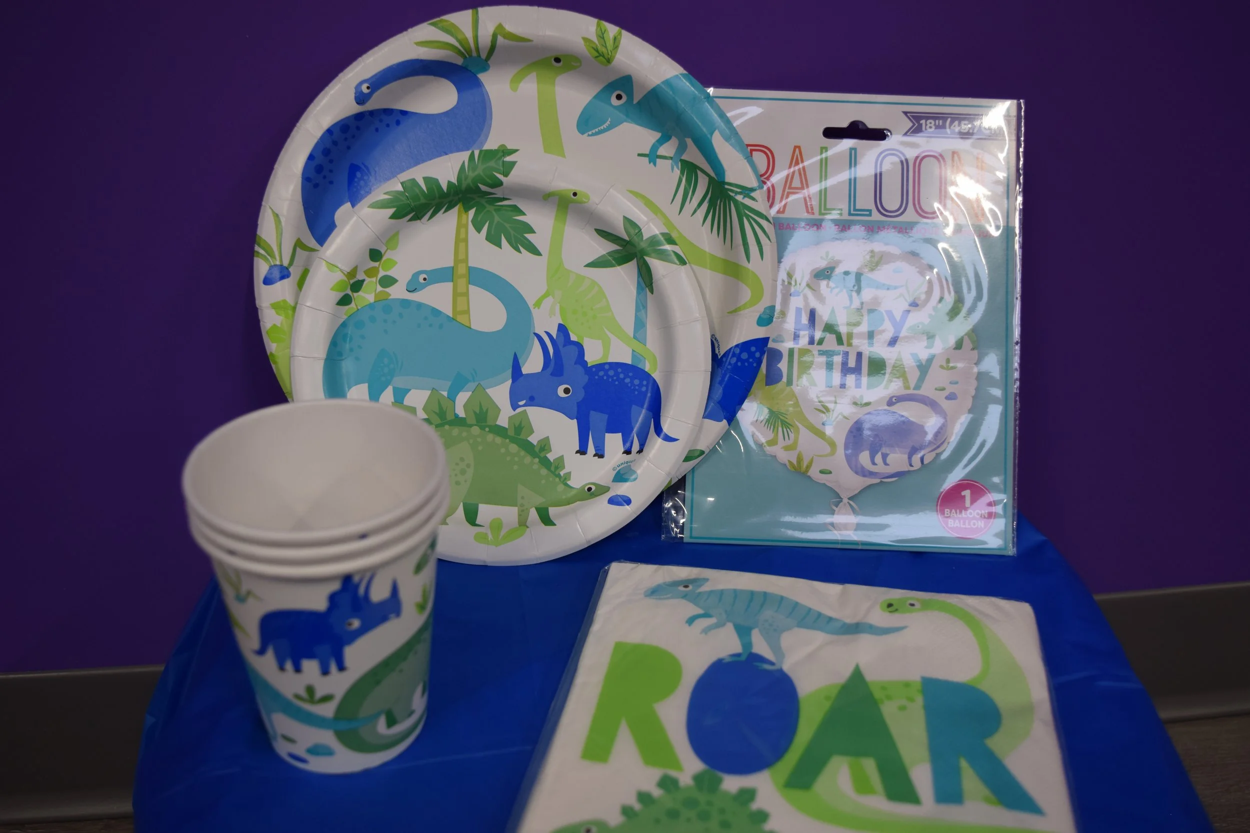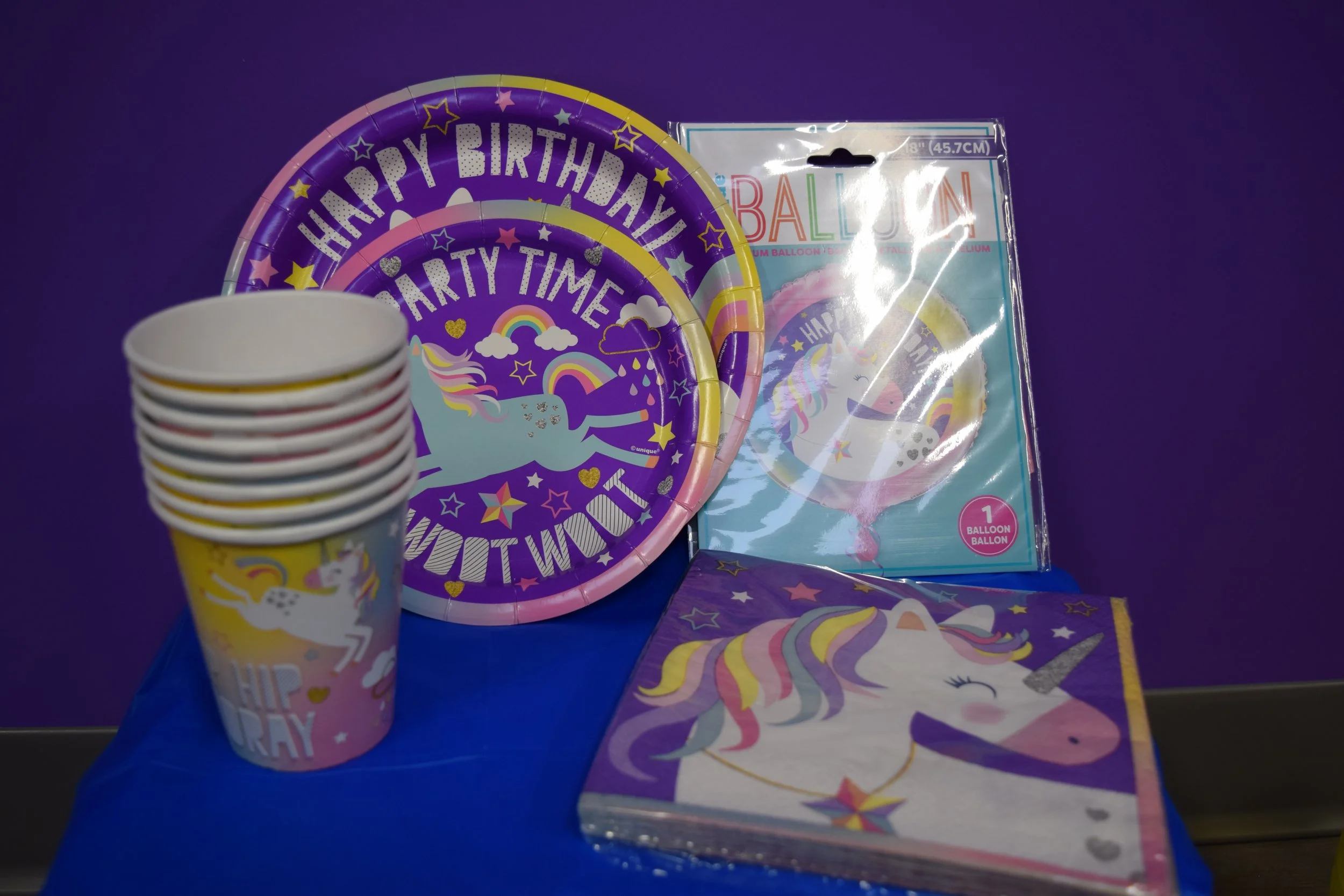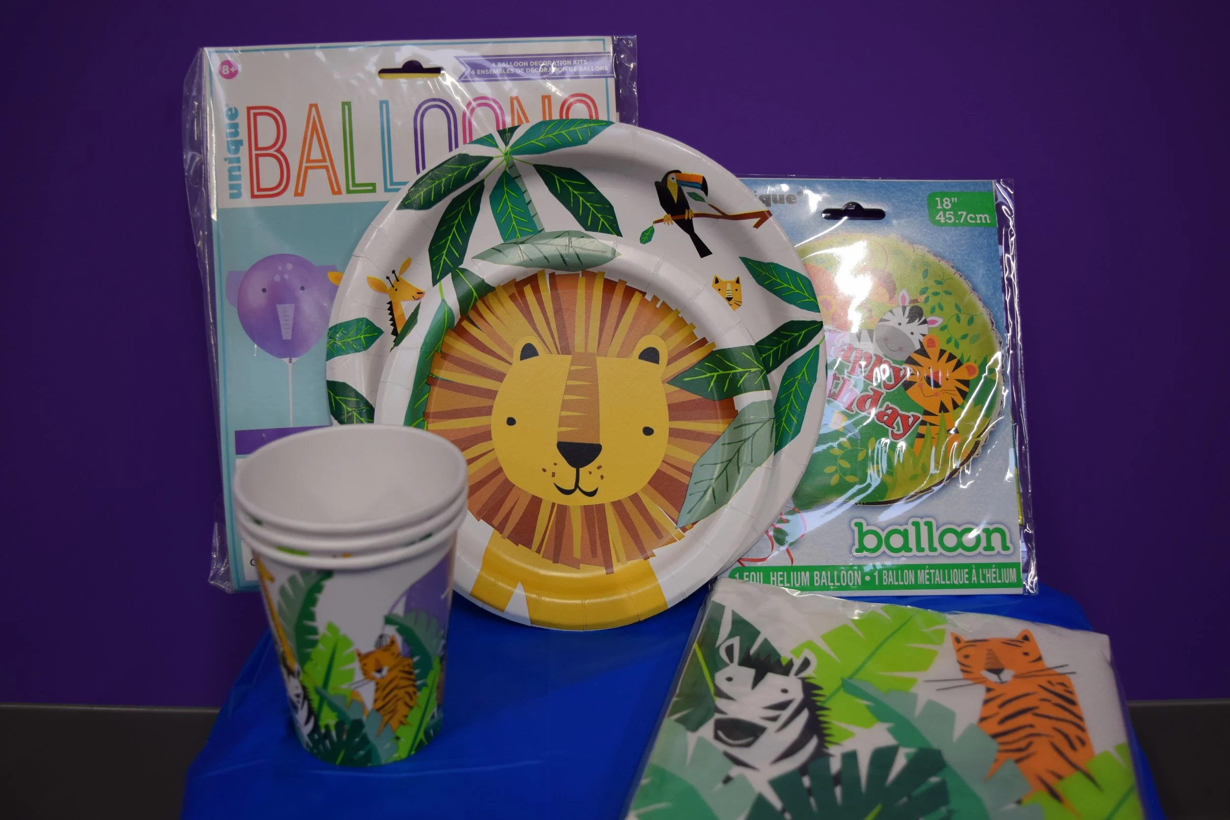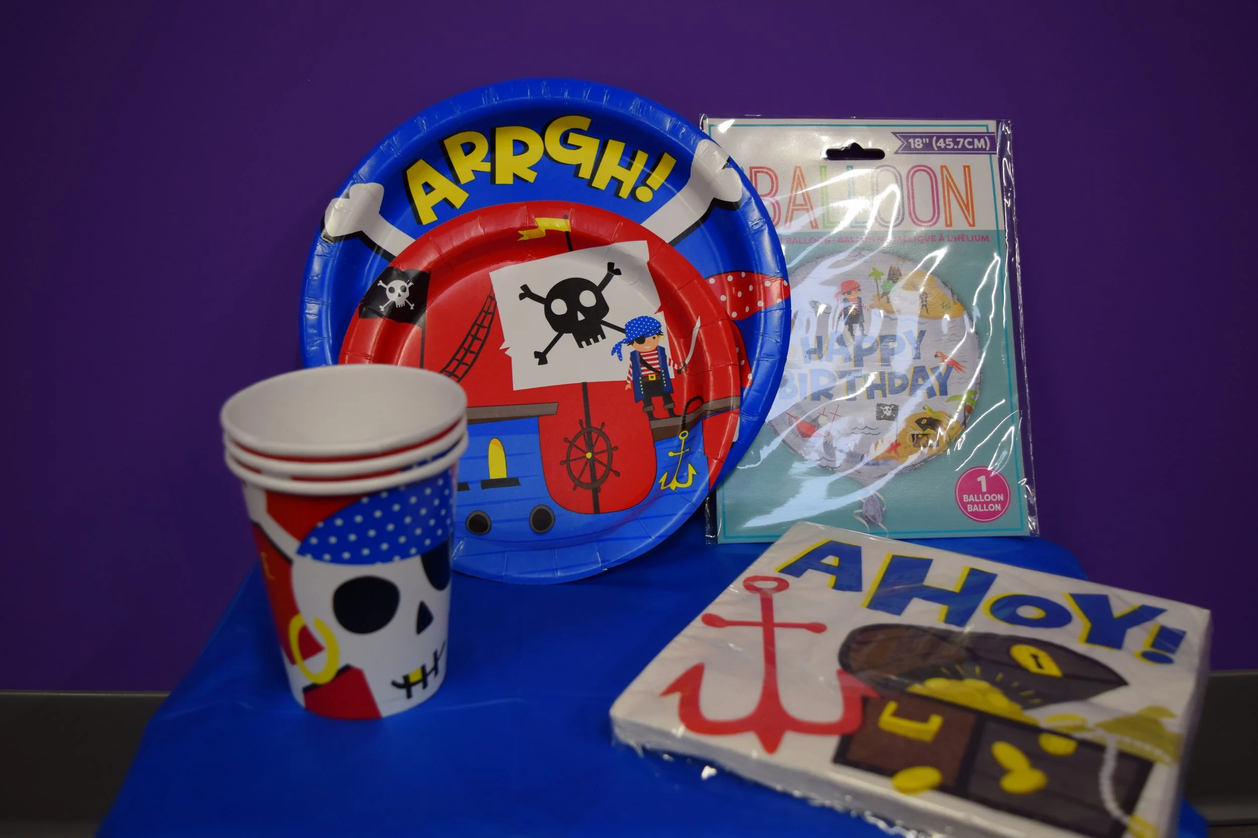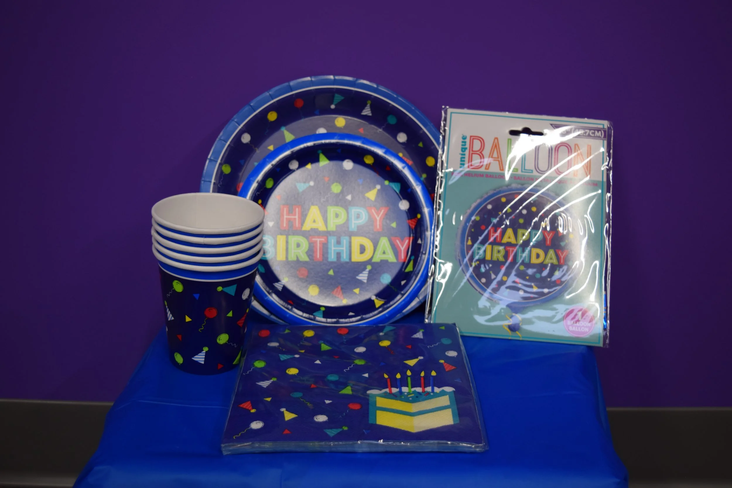 Includes - Tableware, Table Cover, Decorations (Balloons, banner)